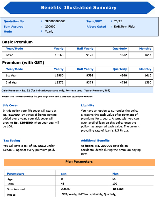 - Settlement option available for maturity and death benefits in instalments 5, 10, and 15 years.